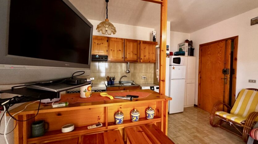 Wnętrze zaprojektowano z myślą o komforcie i funkcjonalności. Składa się z jasnego, klimatyzowanego salonu z częścią jadalną, w pełni wyposażonej kuchni, dwóch sypialni oraz łazienki. Z salonu prowadzi wyjście na słoneczny taras – idealne miejsce na poranną kawę lub wieczorny relaks po dniu spędzonym nad morzem.
